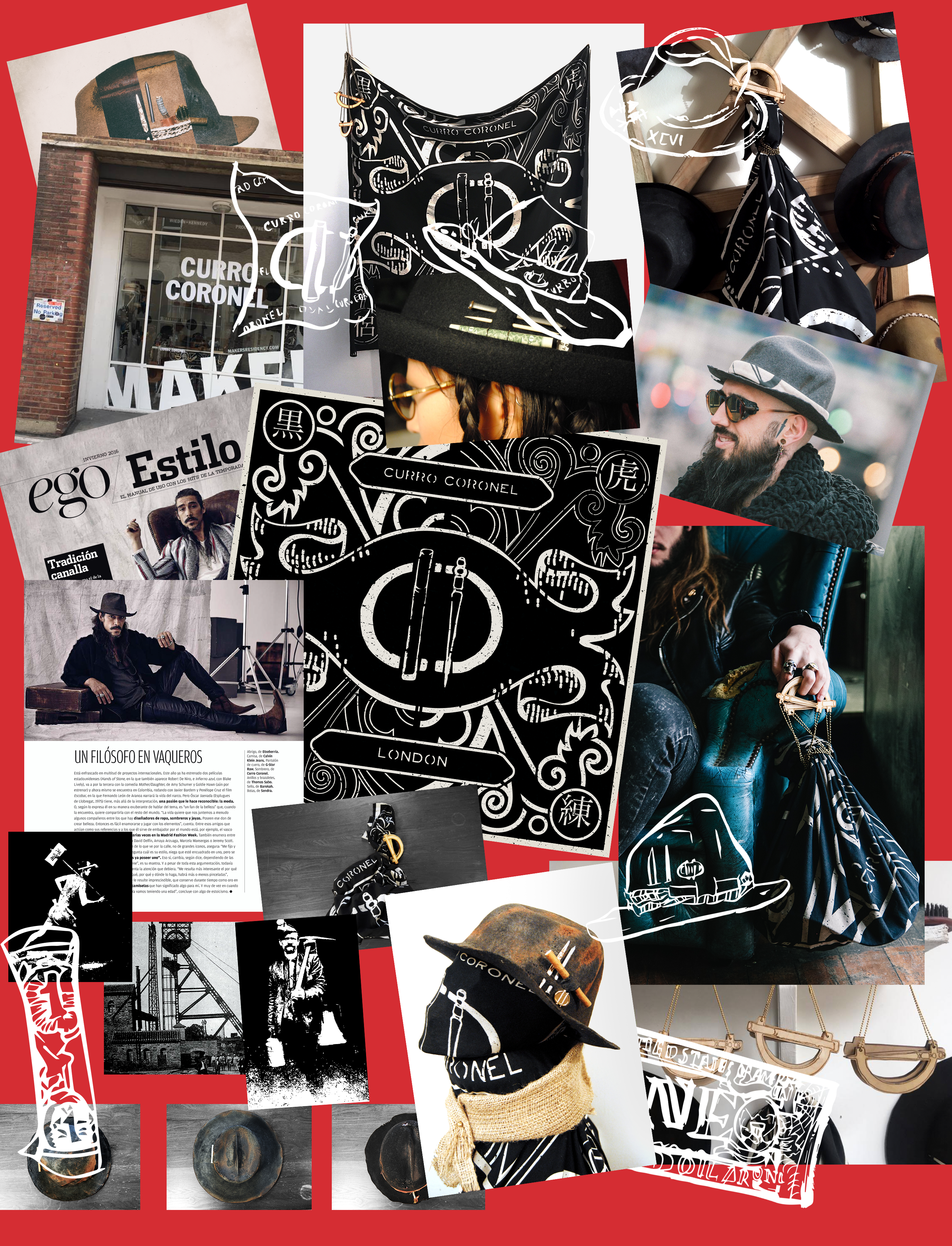 Curro Coronel is a hatter from the mining town Jaén in Spain and his work is heavily influenced by the lives of the miners. The project began as a branding and packaging design brief, but became a product design brief as we settled on the idea of wrapping his pieces in scarves as a reference to the bundles miners in the 1920s would have used to carry their possesions. The packaging became an object in itself, with the printed design taken from traditional Andalucian tiles, and the wooden handles featuring Curro's logo.